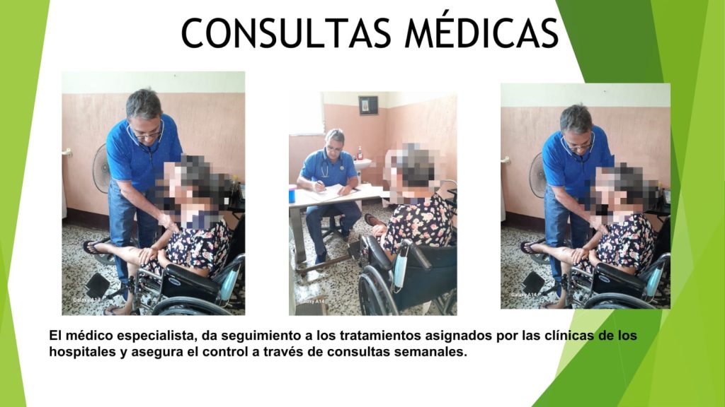9. No se realizarán exámenes de laboratorio ni se realizará extracción de sangre, para eso se coordinará con el médico que coordina atención en el hospicio.